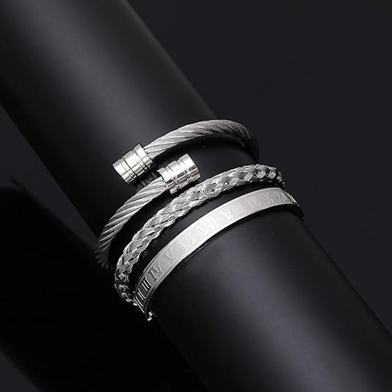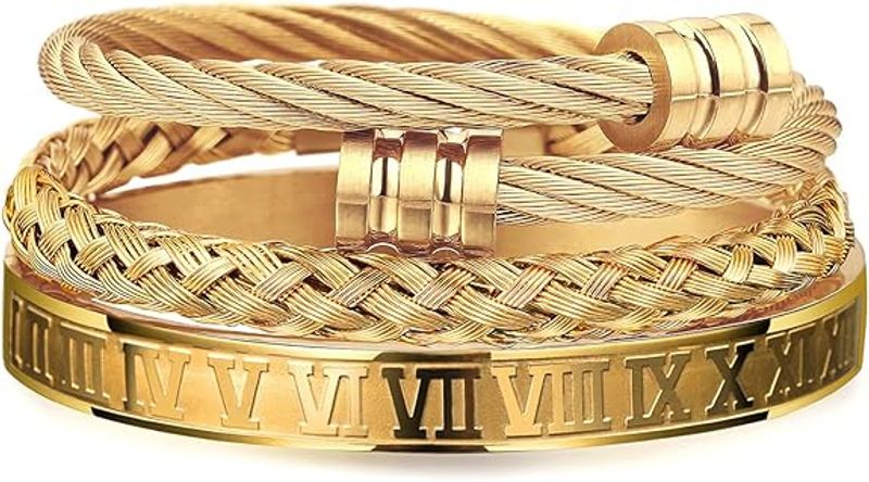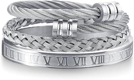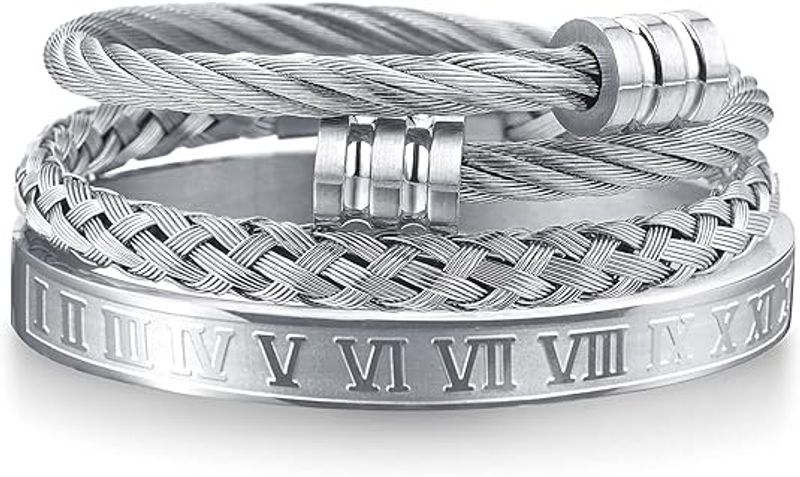 Fashion 3PCS Luxury New Design Stainless Steel Crown Roman Numeral Men's Bracelet