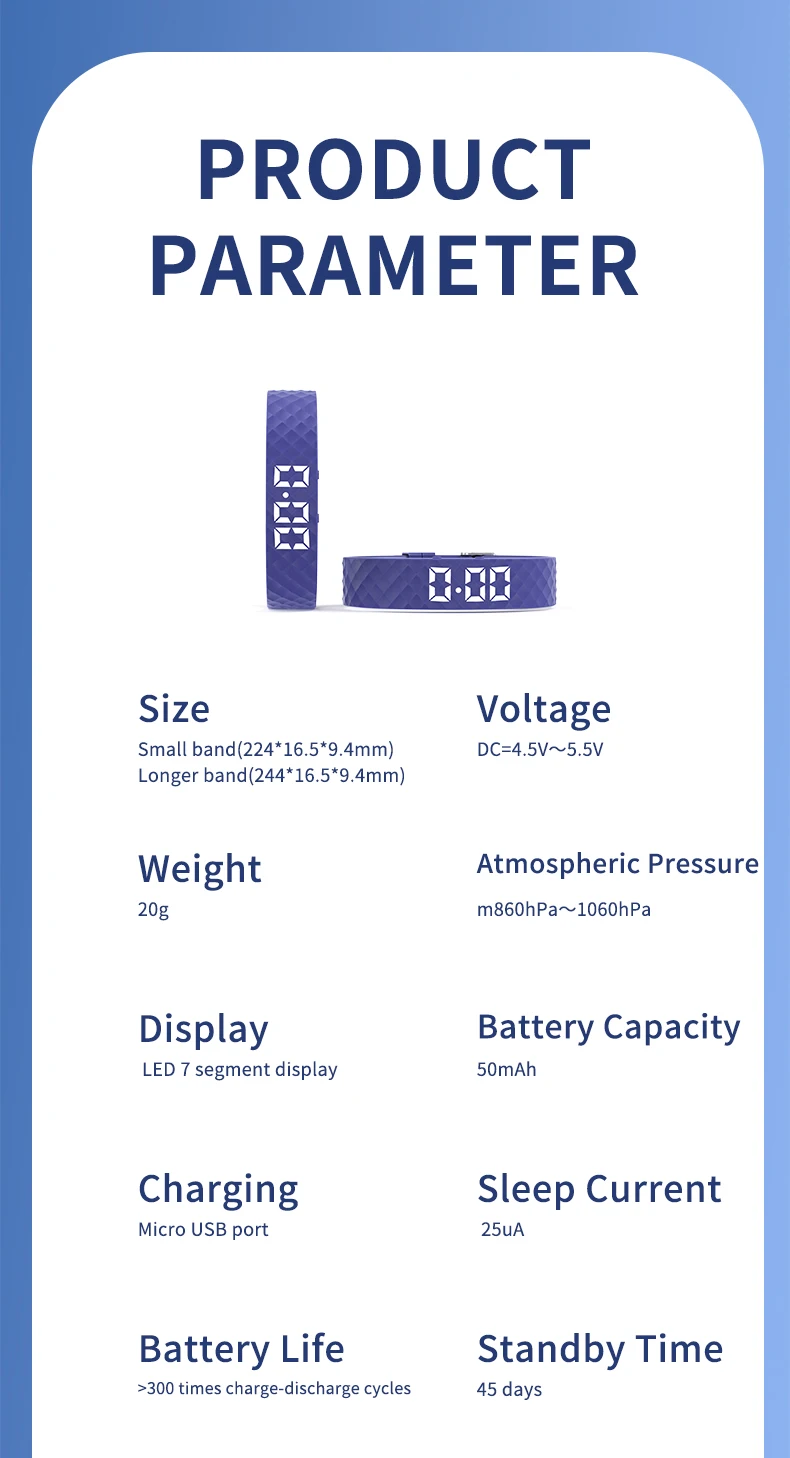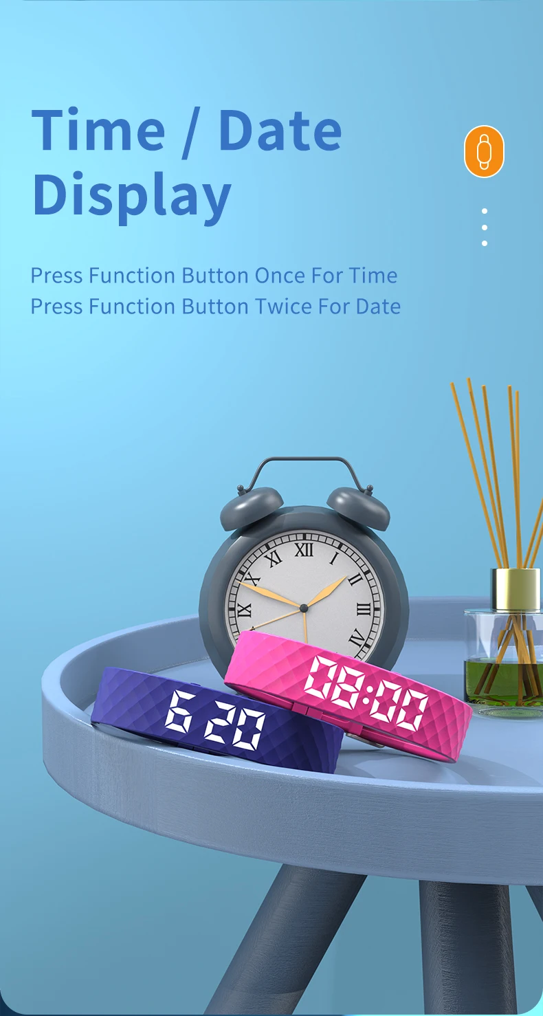 4,Silent vibration alarms,can set 3 alarms on bracelet.