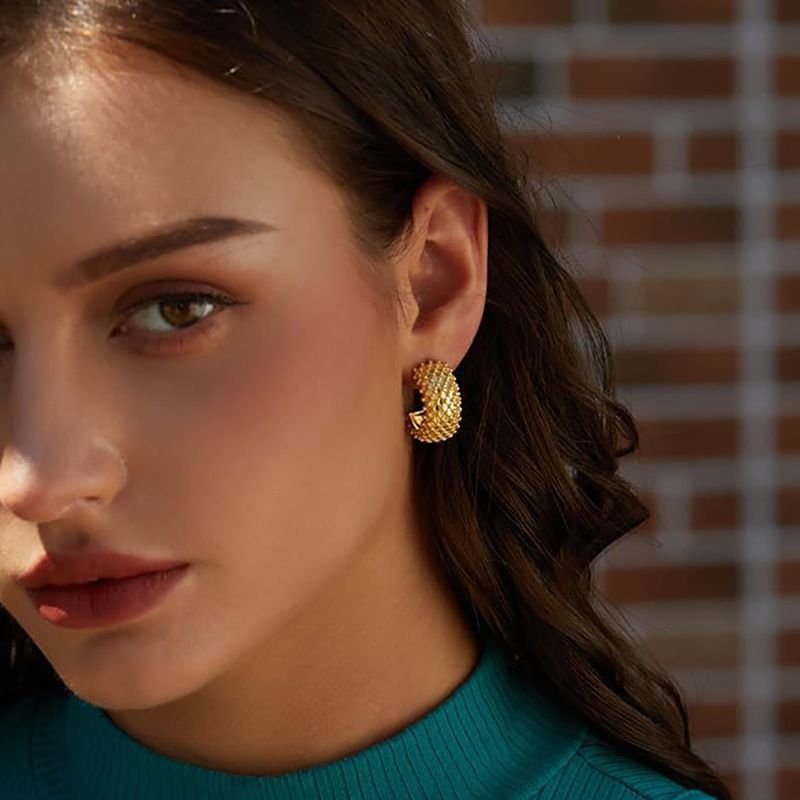 Women's 18k Gold Plated Vintage Polka-dot CC Earrings