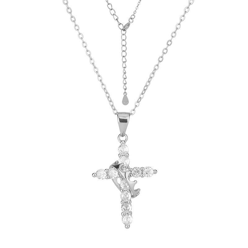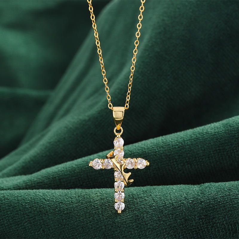 Rotating Dainty Cross Crown Pendant Charm Clavicle Chain Zircon Jewelry Necklace