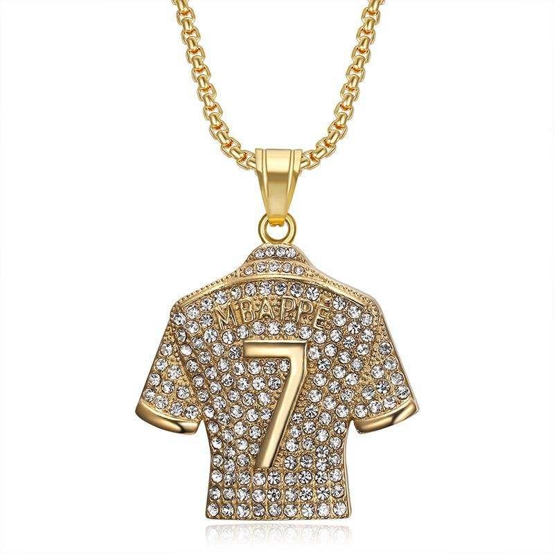 Soccer Jersey Number Pendant Necklace Gold Plated Titanium Steel Hip Hop Chain