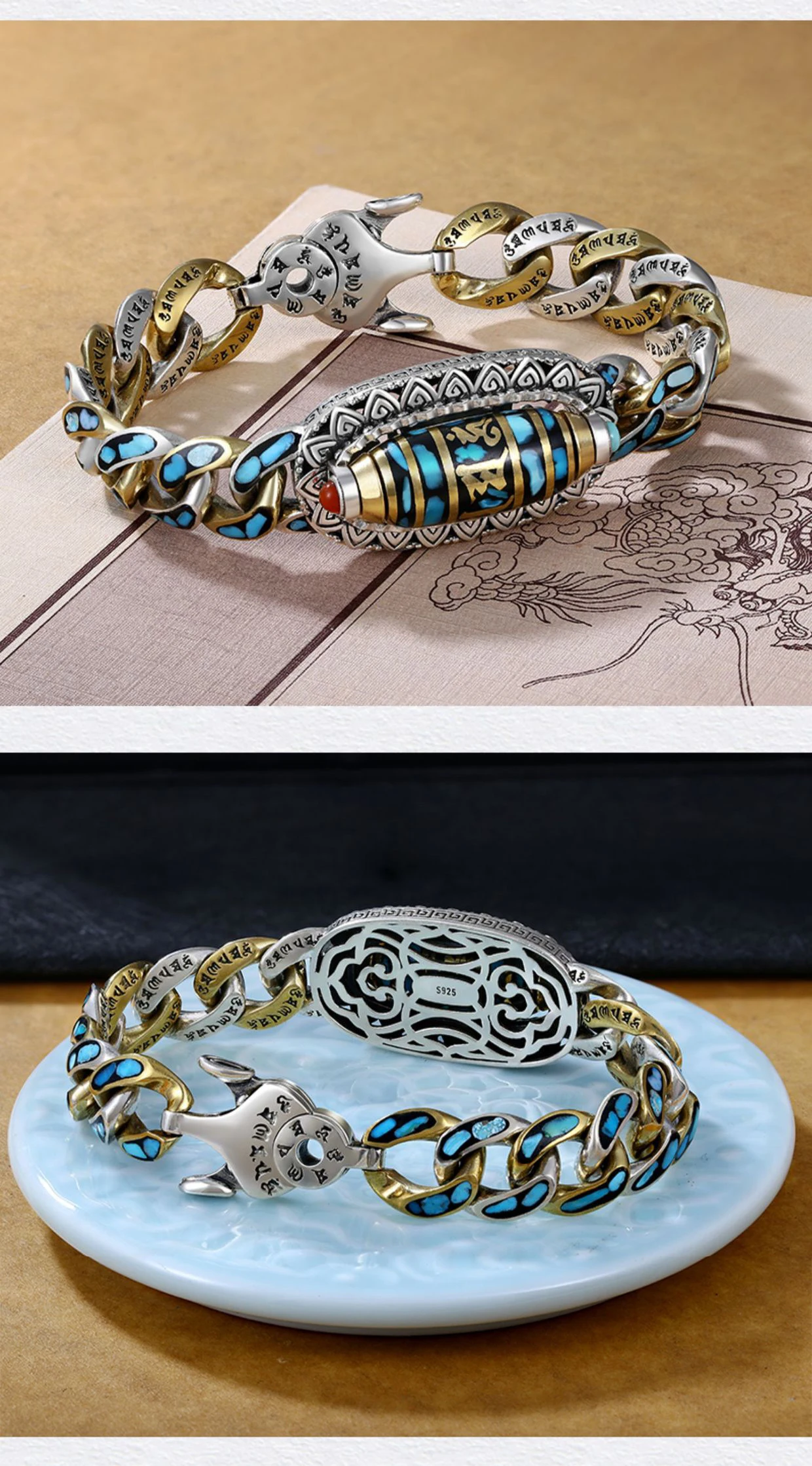 Turquoise Six Words Truth Nine Eye Bead Bracelet