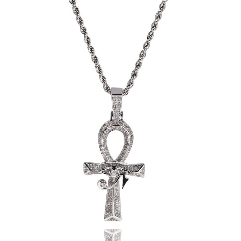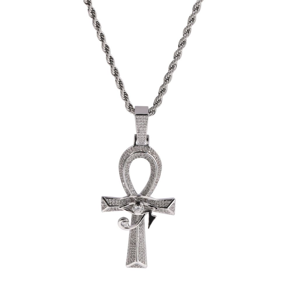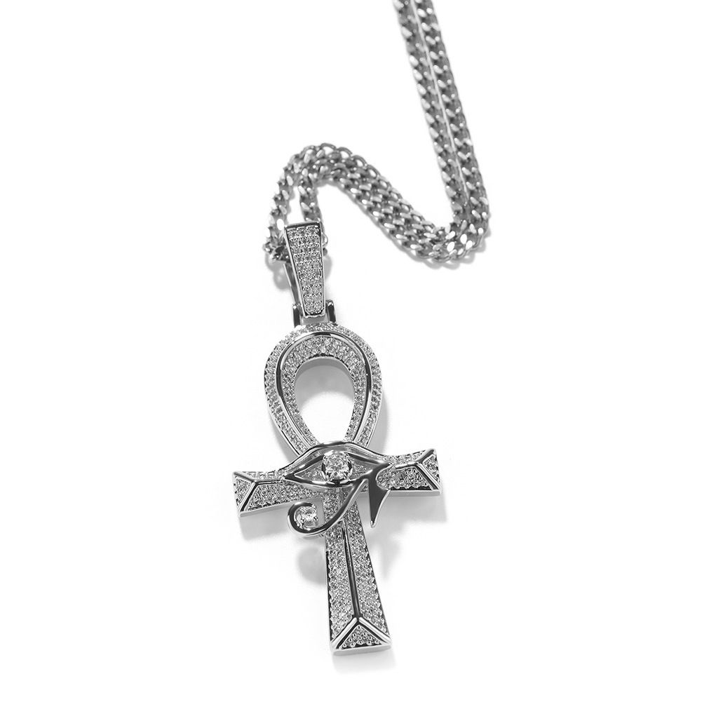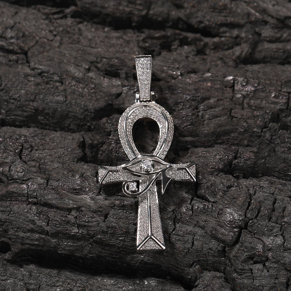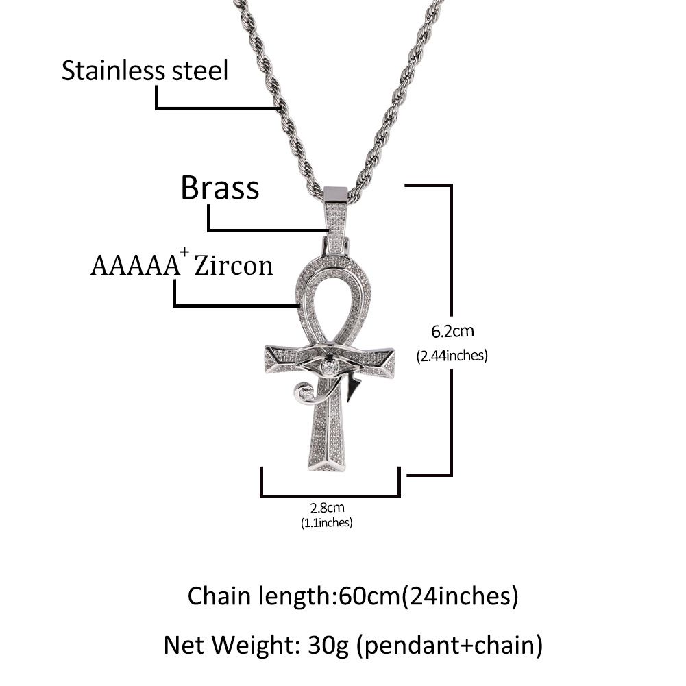 Full Diamond Ankh Cross Horus Eye Pendant Necklace