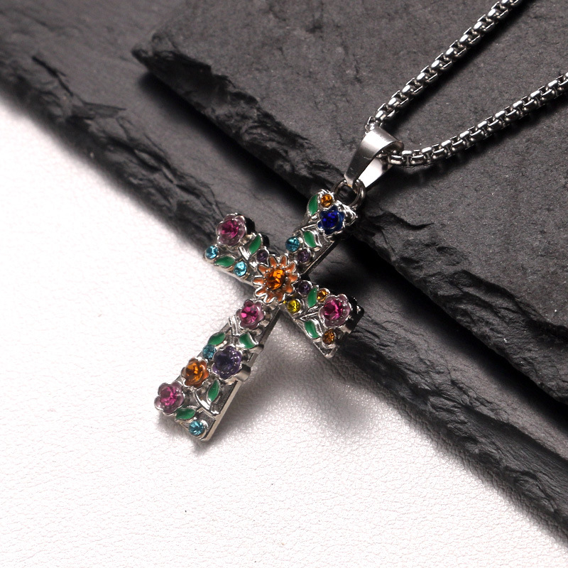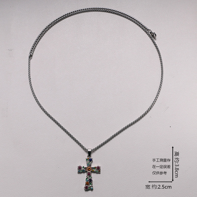 Multicolor Crystal Religious Cross Pendant Necklace for Teens and Women